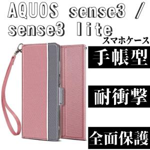 - アクオス ケース カバー AQUOS sense3 / sense3 lite スマホケース 手帳型 スタンド機能 ツートンカラー ストラップ マグネット 定期入れ ポケット シンプル
