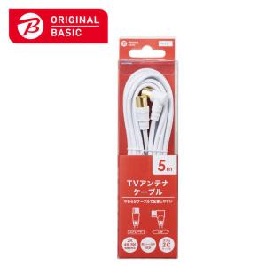 - ORIGINALBASIC 4K8K対応 テレビ用アンテナケーブル 5m ホワイト L型プラグ-ストレートプラグ OB-TCSL2C50WH