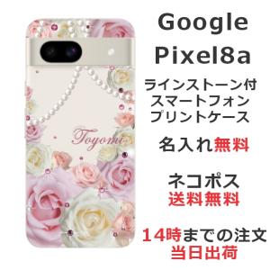 - Google Pixel8a グーグルピクセル8a らふら 名入れ スマホケース ラインストーン スマホカバー 押し花風 ローズピンク