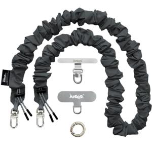 - スマホ ショルダー ストラップ ホルダー セット 挟む グレージュ Wフック ベーシック 斜め掛け グレー ベージュ