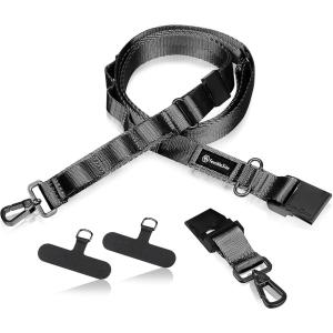 - スマホ ショルダーストラップ 瞬間着脱。 首掛け (ジェットブラック, 長さ105cm〜160cm 幅2.0cm)