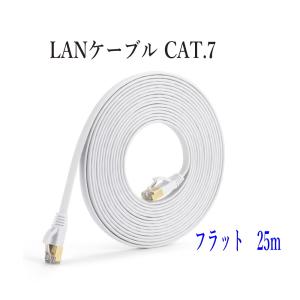 - LANケーブル CAT7 25m フラット カラー 白 10ギガ対応 シールドケーブル 薄型 金メッキ コネクタ ツメ折れ防止