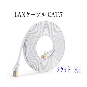 - LANケーブル CAT7 30m フラット カラー白 10ギガ対応 シールドケーブル 薄型 金メッキ コネクタ ツメ折れ防止