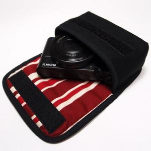 - カメラケース ソニーサイバーショットDSC-RX100 /HX99 /WX800 /WX500ケース(ブラック・ボルドーストライプ)suono ハンドメイド