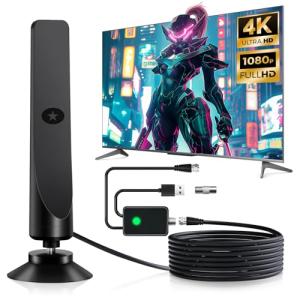 - 室内アンテナ テレビアンテナ 2026年人気最新型500KM 受信範囲 4K対応 HDTV 内蔵5m 360度全方位受信 USB式信号増強 設置