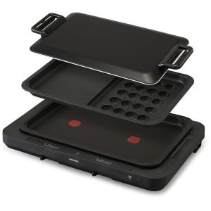 - ホットプレート 焼肉プレート 大型 山善 3枚 平面 波型 たこ焼きプレート EDH-T1300(B) 大型ホットプレート 電気プレート 保温プレート 蓋付き