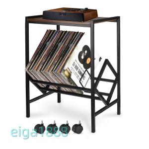 - レコードプレーヤースタンド 最大 80 枚アルバム収納 ターンテーブルスタンド マットブラックメタル脚 レコードプレーヤーテーブル リビングルーム