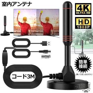 - 室内アンテナ 地デジ テレビ 4K HD TV デジタル 3M 車載 高感度 UHF VHF対応 設置簡単 地デジ専用 地上デジタル放送 USB式 簡