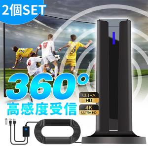 - 2個セット 室内アンテナ アンテナ テレビ テレビアンテナ ポータブル 地デジ TV ブースター 増幅器 車 4K HD 対応 360°受信 高