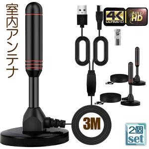 - 室内アンテナ 2個セット 地デジ テレビ 4K HD TV デジタル 3M 車載 高感度 UHF VHF対応 設置簡単 地デジ専用 地上デジタル