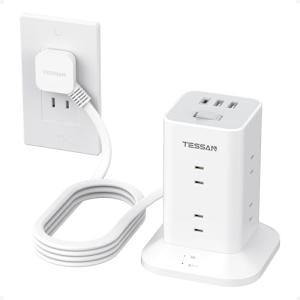 - 電源タップ タワー型 薄型プラグ 延長コード 3m 8個AC コンセント 1個USB-Cポート及び2個USB-Aポート TESSAN テーブルタ