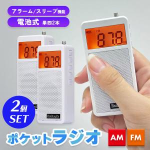 - ラジオ ポケットラジオ 2個セット ワイドFM FM AM 対応 ポータブルラジオ 電池式 目覚まし時計 自動オン 携帯ラジオ ミニラジオ