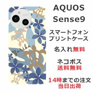 - AQUOS Sense9 アクオスセンス9 SH-53E SHG14 らふら 名入れ スマホケース ハワイアン ネイビー ホヌ