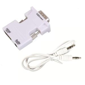 【並行輸入品】HDMI to VGA 変換アダプター 《ホワイト》 ビデオアダプタ音声出力 3.5mmケーブル付き (定形外郵便、送料別商品)