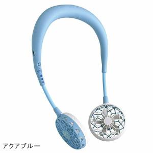 即出荷 アクアブルー 扇風機 首かけ USB 携帯用 首掛け 充電式 ヘッドホン型 熱中症対策 おしゃれ WFAN ダブルファン ハンズフリー ver.2.0 DF201AB スパイス