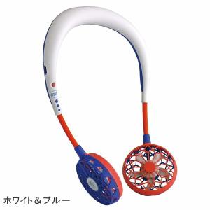 即出荷 ホワイト&ブルー 扇風機 首掛け USB 携帯用 充電式 ヘッドホン型 熱中症対策 おしゃれ WFAN ダブルファン ハンズフリー ver.2.0 DF202WBL スパイス
