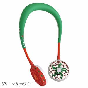 即出荷 グリーン&ホワイト 扇風機 首掛け USB 携帯用 充電式 ヘッドホン型 熱中症対策 おしゃれ WFAN ダブルファン ハンズフリー ver.2.0 DF202GWH スパイス