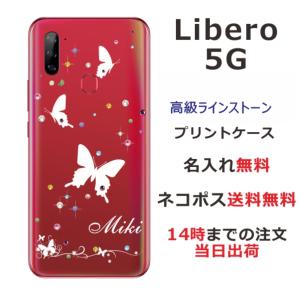 Libero 5G ケース リベロ5G カバー ラインストーン かわいい らふら 名入れ スリーバタフライ