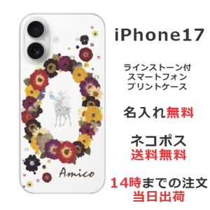 iPhone17 アイフォン17 らふら 名入れ スマホケース ラインストーン スマホカバー 押し花風 ガーランド フラワーズ