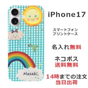 iPhone17 アイフォン17 らふら 名入れ スマホケース レインボーチェックブルー