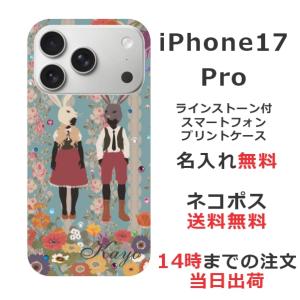iPhone17 Pro アイフォン17プロ らふら 名入れ スマホケース ラインストーン うさぎ カップル