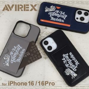 - iPhone16 ケース ブランド AVIREX アヴィレックス カード ポケット 付き 背面 刺繍 ケース iPhone16Pro ケース スマホケース avirex