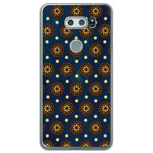- V30+ / JOJO / isai V30+ フラワースポット レトロネイビー スマホケース (受注生産)