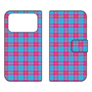- 手帳型スマホケース チェック柄 (BLUE×PINK) (受注生産) Cf LTD AQUOS sense8 SHG11 SH-54D アクオスセンス8 SHG11 SH-54D