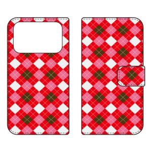 - 手帳型スマホケース チェック柄 (RED×PINK) (受注生産) Cf LTD AQUOS R8 pro SH-51D アクオス R8 pro SH-51D