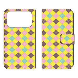- 手帳型スマホケース チェック柄 (YELLOW×PINK) (受注生産) Cf LTD AQUOS sense7 plus アクオスセンス7 plus