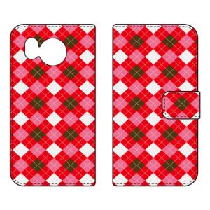 - 手帳型スマホケース チェック柄 (RED×PINK) (受注生産) Cf LTD AQUOS R8 SH-52D アクオス R8 SH-52D