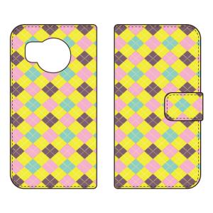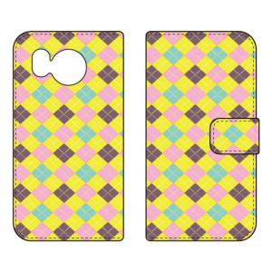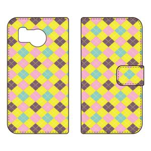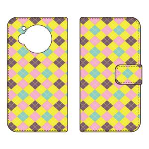 - 手帳型スマホケース チェック柄 (YELLOW×PINK) (受注生産) Cf LTD AQUOS R8 SH-52D アクオス R8 SH-52D