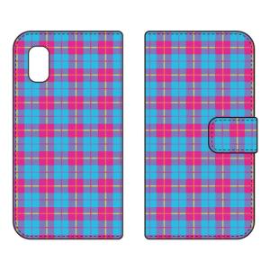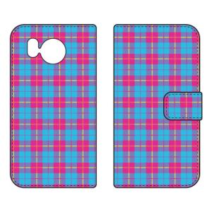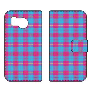 - 手帳型スマホケース チェック柄 (BLUE×PINK) (受注生産) Cf LTD AQUOS R8 SH-52D アクオス R8 SH-52D