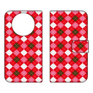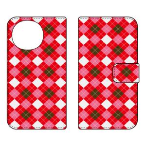 - 手帳型スマホケース チェック柄 (RED×PINK) (受注生産) Cf LTD AQUOS R9 SH-51E アクオス R9 SH-51E
