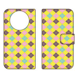 - 手帳型スマホケース チェック柄 (YELLOW×PINK) (受注生産) Cf LTD AQUOS R9 SH-51E アクオス R9 SH-51E