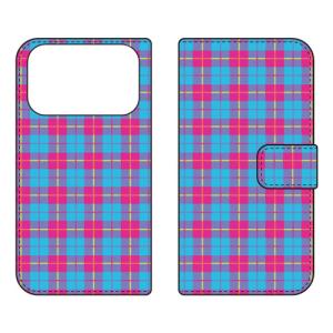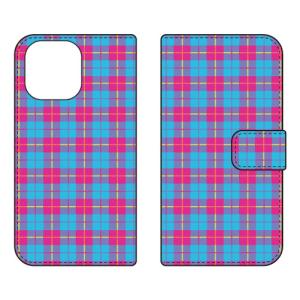 - 手帳型スマホケース チェック柄 (BLUE×PINK) (受注生産) Cf LTD iPhone 17 Pro