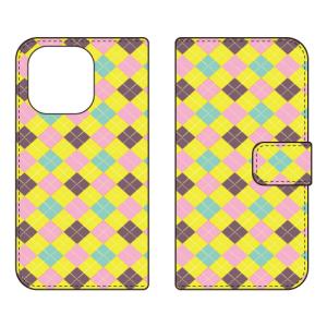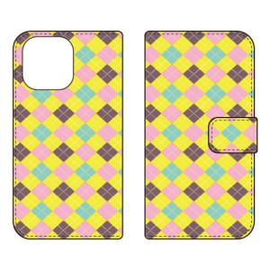 - 手帳型スマホケース チェック柄 (YELLOW×PINK) (受注生産) Cf LTD iPhone 16 Pro Max