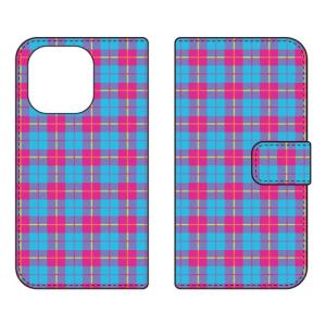 - 手帳型スマホケース チェック柄 (BLUE×PINK) (受注生産) Cf LTD iPhone 16 Pro Max