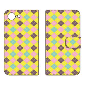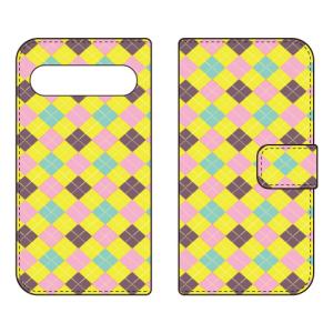 - 手帳型スマホケース チェック柄 (YELLOW×PINK) (受注生産) Cf LTD あんしんファミリースマホ