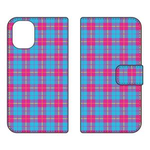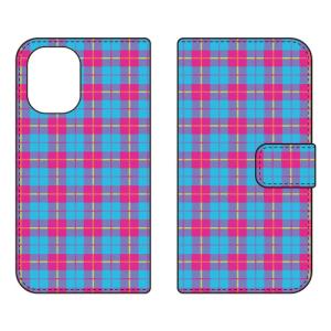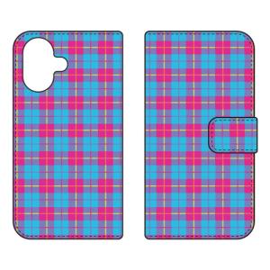 - 手帳型スマホケース チェック柄 (BLUE×PINK) (受注生産) Cf LTD iPhone 16e