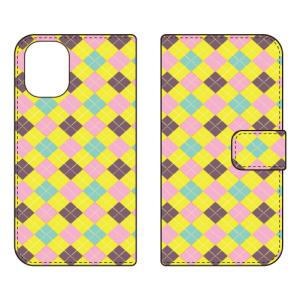 - 手帳型スマホケース チェック柄 (YELLOW×PINK) (受注生産) Cf LTD iPhone 16e