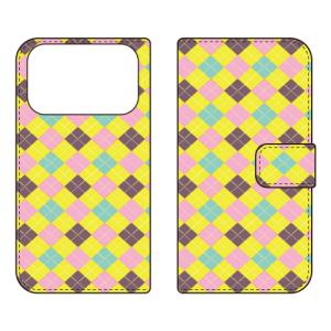 - 手帳型スマホケース チェック柄 (YELLOW×PINK) (受注生産) Cf LTD Xperia 1 VII SOG15 SO-51F A501SO