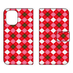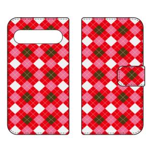 - 手帳型スマホケース チェック柄 (RED×PINK) (受注生産) Cf LTD シンプルスマホ6 シンプルスマホ7
