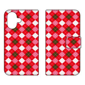 - 手帳型スマホケース チェック柄 (RED×PINK) (受注生産) Cf LTD iPhone 16e