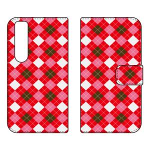 - 手帳型スマホケース チェック柄 (RED×PINK) (受注生産) Cf LTD Xperia 10 VII SOG16 SO-52F A502SO