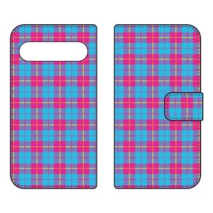 - 手帳型スマホケース チェック柄 (BLUE×PINK) (受注生産) Cf LTD Xperia 1 VII SOG15 SO-51F A501SO