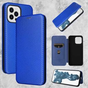 - ROYALMONSTER iPhone 14Pro用カーボンファイバー製手帳型ケース BL RM-14PRCb-BL