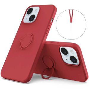 - ROYALMONSTER iPhone 15 Plus シリコン製ケース リング付(レッド) RD RM-15PLSili-RD