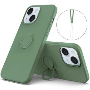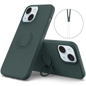 - ROYALMONSTER iPhone 15 シリコン製ケース リング付(ダークグリーン) DG RM-15Sili-DG
