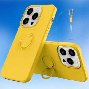 - ROYALMONSTER iPhone 15 Pro シリコン製ケース リング付(イエロー) YE RM-15PRSili-YE